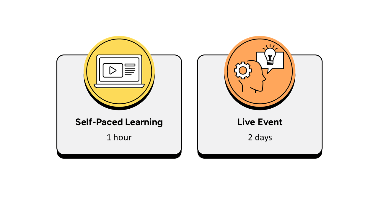 - It is recommended that learners have a minimum of 2 weeks between the course booking and the instructor-led live event to complete the necessary hours of learning.